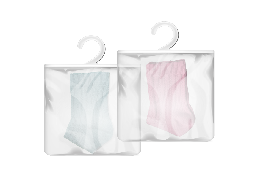 Perfect for displaying products and accessories. It is filled from the bottom and fixed with resealable tape or permanent tape. The reinforced white head is punched with a hole for the product to be hang on the shelf.